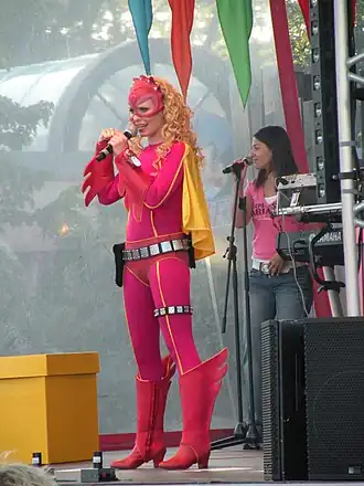 Mega Mindy is a Flemish children's television series with a supernatural/superhero drama theme. The series was created by Studio 100 and airs on the Flemish TV channel Ketnet.[1] It centers around a young woman, Mieke (Free Souffriau), who lives with her grandparents and works as a police officer but also has a secret identity as superhero Mega Mindy.[2] She tries to keep it a secret, but falls in love with Toby (Louis Talpe) who also works at the police.[3] He is in love with Mega Mindy and does not know that Mieke secretly likes him and is actually Mega Mindy. She tries to find a way to balance between work and being a superhero, but it is not always easy.