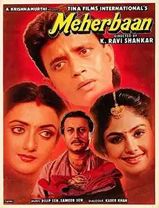 Meherbaan is a 1993 Indian Hindi-language film directed by K. Ravishankar, starring Mithun Chakraborty, Ayesha Jhulka, Shantipriya, Anupam Kher and Sadashiv Amrapurkar. The film was a remake of Tamil film Naan Pudicha Mappillai.