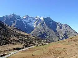 La Meije is a mountain in the Massif des Écrins range, located at the border of the Hautes-Alpes and Isère départements. It overlooks the nearby village of La Grave, a mountaineering centre and ski resort, well known for its off-piste and extreme skiing possibilities, and also dominates the view west of the Col du Lautaret. It is the second highest mountain of the Écrins after the Barre des Écrins.