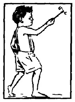 Children play with khung or khoong tops (ꯈꯨꯡ)[6] by tying a string around it and then pulling it to make it spin on the ground. The khung top spins quickly and stays balanced on its pointed end. Children may try to keep it spinning for a long time or make it spin in different ways. This game is usually played in open spaces where the khung top can spin freely.[2]