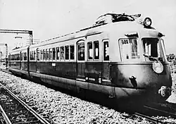 The sets 3401 and 3402 entered operation on March 20, 1937, 5 days after the Nagoya Pan-Pacific Peace Exposition began.[8] The set 3403 entered operation on April 15 in the same year. The official test run of the set 3401 was done three days before it entered operation, which ran faster than 100km/h. Nagoya Shinbun (currently Chunichi Shimbun) reported the test run with the heading "One Hundred kilometers per hour, faster than the Tsubame".[9] The sets were used for limited express and rapid services in the eastern rail networks formerly owned by Aichi Electric Railways.[10]