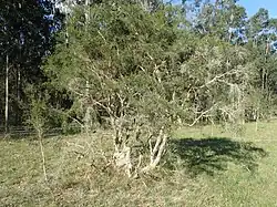 Melaleuca alternifolia, commonly known as tea tree,[2] is a species of tree or tall shrub in the myrtle family, Myrtaceae. Endemic to Australia, it occurs in southeast Queensland and the north coast and adjacent ranges of New South Wales where it grows along streams and on swampy flats, and is often the dominant species where it occurs.