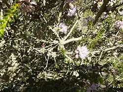 Melaleuca camptoclada is a shrub in the myrtle family, Myrtaceae and is endemic to the south-west of Western Australia. It was first described in 1990 in a review of the genus Melaleuca when the species Melaleuca laxiflora at that time was found to comprise ten species. Two of those species were new - M. camptoclada and M. ctenoides.[2]