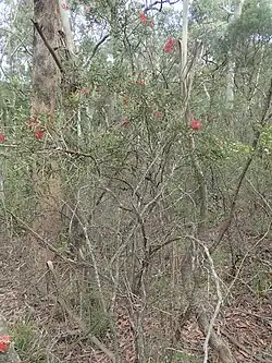 Melaleuca megalongensis, commonly known as Megalong Valley bottlebrush,[2] is a plant in the myrtle family, Myrtaceae and is endemic to New South Wales. (Some Australian state herbaria use the name Callistemon megalongensis).[3] It is a shrub similar to Melaleuca citrina (Callistemon citrinus) which occurs in the same area and is difficult to distinguish from it, except when in flower.