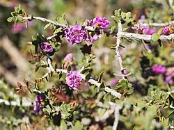 Melaleuca violacea occurs from Ravensthorpe to Walpole and as far inland as the Stirling Range and Ongerup district.[2] It grows in sandy or clayey soils over limestone or laterite on low ridges, undulating terrain and swamps.[7][8]
