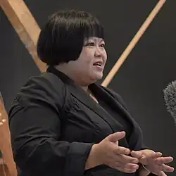 Melati Suryodarmo (born 12 July 1969) is an Indonesian durational performance artist. Her physically demanding performances make use of repetitive motions and often last for many hours, sometimes reaching "a level of factual absurdity". Suryodarmo has performed and exhibited throughout Europe and Asia as well as in North America. Born in Surakarta, she attended Padjadjaran University, graduating with a degree in international relations before moving to Germany. She lived there for 20 years, studying performance art at the Braunschweig University of Art with Butoh choreographer Anzu Furukawa and performance artist Marina Abramović.