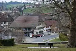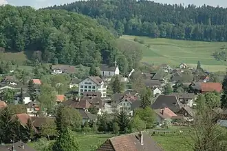The Grünenberg-Schnabelburg-Langenstein complex of three ruined castles sit on a hill above the village. The Lords of Langenstein were first mentioned in 1194 when they helped found St. Urban's Abbey.[4] The castle was likely built around that same time. Shortly thereafter, the Barons of Grünenberg inherited the Langenstein lands which they ruled from Grünenberg Castle. Between the 12th and 15th centuries, Grünenberg Castle was a cultural and political center for the nobility that ruled over much of the Oberaargau region. As the family split into separate branches, including the Schnabel von Grünenberg and Grimm von Grünenberg, a third castle was added to the complex.[4]