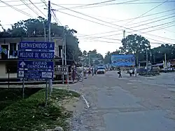 Melchor de Mencos is a municipality in the Petén Department of Guatemala with population 23,813. It is situated on the eastern border with Belize, and is the only major border crossing from Guatemala to Belize. The city was established in April 1960. It is named after Sergeant Major Melchor de Mencos y Varón, who in 1754 journeyed with a tiny contingent of Spanish colonial troops from what is now Antigua, Guatemala to the coast of present-day Belize, there to combat English "pirates" who had settled that region and established a self-governing community.[1] A large signboard-map at the border crossing between Benque Viejo del Carmen and Melchor depicts Belize as Guatemala's eastern province, consistent with Guatemala's ongoing claim.