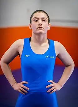 ![]() Melika Balali, the reigning 2022 British Champion in freestyle wrestling, displaying her mastery in the sport | |
