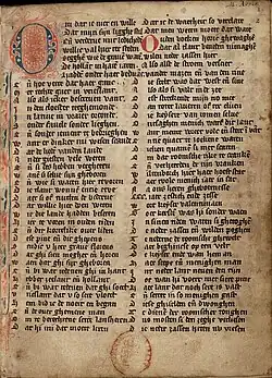 Melis Stoke was probably born in the Dutch province of Zeeland around 1235. He died somewhere around 1305. He started writing in 1290 in Middle Dutch a chronicle in rhyme on the countship of Holland. His most famous work was the Rijmkroniek, the chronicle in rhyme, among the first books written in the Dutch language. In it is the account of the murder of count Floris V. Stoke found his information from written sources, eyewitness accounts and his own observations.