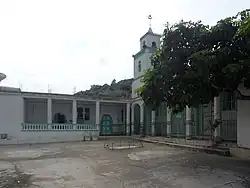 All that remains of the old Hammadid mosque are traces of its mihrab in the form of a semicircular arch, with its decorations believed to be modern. However, the motifs situated above it are original, taking the form of interlocking ornamentation reminiscent of those found in Almohad architectural structures, particularly seen in the minarets of Hassan Mosque in Rabat, Kutubiyya Mosque in Marrakech, and Giralda in Seville.[5][6] The construction of the mihrab is visibly raised from the wall's surface and made of regular bricks. Interestingly, the mosque is not oriented towards the qibla but rather towards the south, outside the qibla wall.[5] In front of the mihrab lies a tomb, believed to be that of Sidi Yahya Abi Zakaria, although sources like Ouratilani and Alghobrini suggest he was buried in Béjaïa, hence locals refer to him as Sidi Yahya Abi Qubrayn.[5]