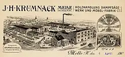 In 1908, after the recent investments, the Krumnack company ran into financial difficulties due to declining sales,[1] which led to the opening of Insolvency on 6 April 1909.[2] An important supplier up to this point was the timber import company Pundt & Kohn in Geestemünde (today Bremerhaven). Pundt & Kohn was a major creditor of Krumnack through trade credit. For this reason and also due to family interests, the Melle company was taken over by Pundt & Kohn on 27 September 1909 as part of the Liquidation .