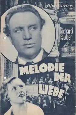 Melody of Love (German: Melodie der Liebe) is a 1932 German operetta film directed by Georg Jacoby and starring Richard Tauber, Petra Unkel and S.Z. Sakall.[1] It was shot at the Johannisthal Studios in Berlin with sets designed by the art director Max Heilbronner. It premiered on 24 April 1932.[2] It is also known in English by the alternative title Right to Happiness.