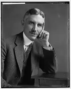 In 1933, with the support of his friend Cary T. Grayson, he was appointed to the Board of Commissioners of the District of Columbia by President Franklin Delano Roosevelt.[4] He was reappointed two more times but did not finish his third term.[3] On July 15, 1941, during a meeting with colleagues, he had a heart attack and fell onto his desk and then the floor where he was declared dead a few minutes later. One of his last official act was laying the cornerstone for the DC Armory building on East Capital Street the day before. His death came less than three weeks after he submitted a letter of resignation due to poor health, but the White House had not taken action on a replacement yet. After his death, Roosevelt gave him the name of "Grand Old Man of the District." He was buried next to his wife in the family plot in Manassas Cemetery in Manassas, Virginia.[5]