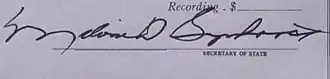 Melvin D. Synhorst (January 21, 1914 – March 28, 1999) was the Iowa Secretary of State from 1949 to 1965 and from 1967 to 1980. Elected on November 2, 1948, and on November 8, 1966, he was a native of Sioux County. Serving for the two years between his terms was Gary L. Cameron. Synhorst's second term ended at his resignation; he was replaced by Mary Jane Odell.[1] From 1959 to 1960, Synhorst was the president of the National Association of Secretaries of State.[2]