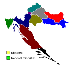 In addition, there are two non-geographical districts. In District XI, up to 12 members are chosen by proportional representation - depending on the number of voters in Croatia - to represent Croatian citizens residing abroad (this district is commonly referred to as the diaspora electorate). Although all people living outside Croatia are eligible to vote for this list, the majority of voters who turnout for this list traditionally consists of Croats of Bosnia and Herzegovina, the majority of whom hold dual Croatian and Bosnian citizenships. In District XII an additional 8 members are elected to represent the 22 ethnic minorities in Croatia which are legally recognized as such in the Croatian Constitution, with 3 of these seats reserved for the Serbian minority.