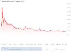 Graph of the value of the TRUMP meme coin from January 18, 2025 to April 1, 2025. About 764,000 people who invested after the all time high (ATH) on Jan. 19 have lost money.[9] This is a typical price graph for many meme coins.