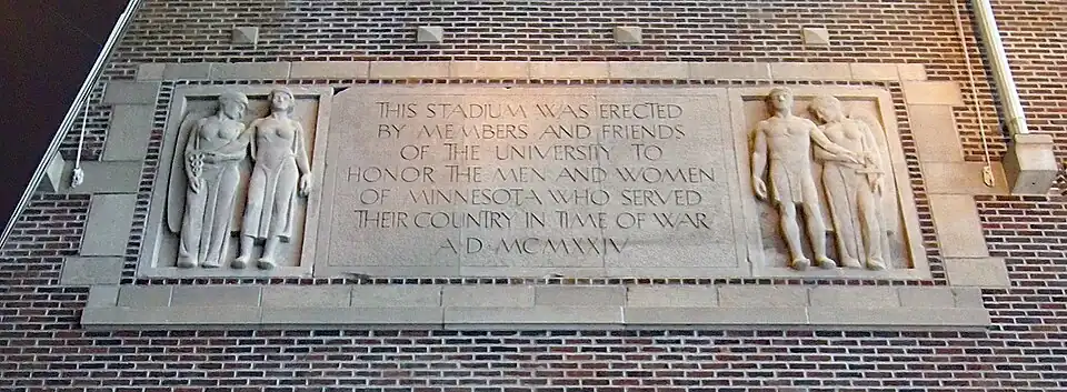 Memorial Stadium, also known as the "Brick House", was an outdoor athletic stadium in the north central United States, located on the campus of the University of Minnesota in Minneapolis. It was the home of the Minnesota Golden Gophers football team for 58 seasons, from 1924 through 1981. Prior to 1924, the Gophers played at Northrop Field.