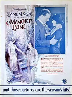 Memory Lane is a 1926 American silent romantic comedy film directed by John M. Stahl and starring Eleanor Boardman, Conrad Nagel, and William Haines.[1]