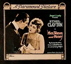 Men, Women, and Money is a lost[1] 1919 American drama silent film directed by George Melford and written by Beulah Marie Dix and Cosmo Hamilton. The film stars Ethel Clayton, James Neill, Jane Wolfe, Lew Cody, Sylvia Ashton, Irving Cummings, and Winifred Greenwood. The film was released on June 15, 1919, by Paramount Pictures.[2][3]