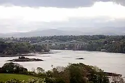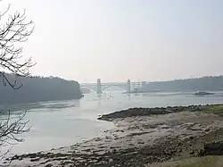 The northern (Anglesey) shore of the Menai Strait has visible evidence of at least 11 fish weir sites. Five of these are northeast of Beaumaris, in Llangoed Community and are thought to have all been associated with Llanfaes Friary. All five are of the rectilinear design.[3] Two were still in use in the 19th century, one of which was still operating in 1960, whilst others were unknown until identified by aerial photographs.[4]