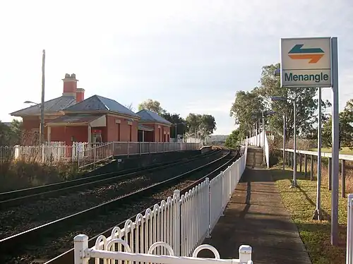 Menangle railway station is a heritage-listed railway station located on the Main Southern line in the south-western Sydney settlement of Menangle, in the Wollondilly Shire local government area of New South Wales, Australia. The station opened on 1 July 1863.[4][5] The property was added to the New South Wales State Heritage Register on 2 April 1999.[6]