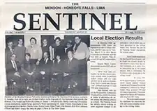 Founded in March 1989 as the Mendon-Honeoye Falls-Lima Sentinel by Shirley Arena and Christopher Carosa, the paper took the place of the Honeoye Falls Times and Lima Recorder both of which ceased publication on January 12, 1989 and were merged with the Honeoye Lake Courier and Livonia Gazette to form the Town & Country Gazette.[1] The Honeoye Falls Times had served the Mendon-Honeoye Falls area since 1888, while the Lima Recorder had served the Lima area since 1869. The Town & Country Gazette abruptly stopped publication on March 23, 1989 when its owner, Downtown Magazine, Inc., filed Chapter 11.[2] Richard A. Gagliano, who published the Town & Country Gazette, had previously purchased the Honeoye Falls Times, Lima Recorder, and other area newspaper from Dorotha Bradley in 1987.[2]