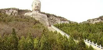 The Mengshan Giant Buddha (Chinese: 蒙山大佛; pinyin: Méngshān Dàfó) is a stone statue located in the city of Taiyuan, Shanxi and was built during the Northern Qi dynasty.[1][2] Initially discovered in a 1980 census, the statue was found to have its head missing.[3] From 2006 to 2008, people constructed a 12-meter tall head for the statue.[4][1] The site opened to the public in October 2008.[5]