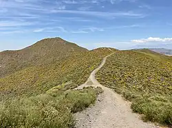 The Menifee Hills are a ridge approximately 2 miles long and 1.5 miles wide, with a high point of 2,141 ft.[13] Bell Mountain is a 1,848 ft mountain located in Menifee.