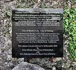 Menlo gave its name to the town of Menlo Park in California, which was named by Denis J. Oliver and D.C. McGlynn after their native village.[3]