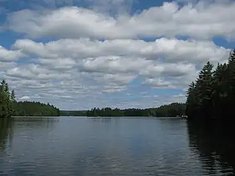 The lake is about 3.1 kilometres (1.9 mi) long and 1.7 kilometres (1.1 mi) and lies at an elevation of 313 metres (1,027 ft). The primary inflow is Mephisto Creek at the northeast. There are also four unnamed creek inflows: one at the north from Mawson Lake, one at the east, and two at the south, one of which comes from the direction of Cashel Lake. The primary outflow is a channel to Dark Lake, which flows via Dixon Creek, Beaver Creek, the Crowe River and the Trent River to the Bay of Quinte on Lake Ontario at Trenton.