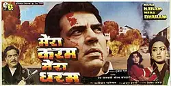 Mera Karam Mera Dharam (transl. My deed, my religion) is a 1987 Bollywood film,[1] starring Dharmendra and Moushumi Chatterjee.[2][3] The movie was shot in Murshidabad kathgola Palace, West Bengal.