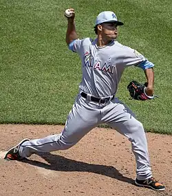 On July 28, 2017, he was traded by the Mets along with Ricardo Cespedes for A. J. Ramos.[2] Miami assigned him to the Jupiter Hammerheads and he finished the season there. In 22 games (20 starts) between Columbia, St. Lucie, and Jupiter, he was 13–3 with a 1.66 ERA, 0.97 WHIP, and a .212 batting average against.[3] On November 20, 2017, the Marlins added him to their 40-man roster to protect him from the Rule 5 draft.[4] He began 2018 with the Jacksonville Jumbo Shrimp.