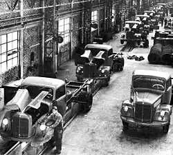 That same year the company carried out its plans for the manufacture and assembly of L3500, L4500 and L6600 models. The assembly of the LO 3500 bus and the L5400 truck also began. In 1954, MBA inaugurated its head office in the city of Buenos Aires, with the presence of the German Chancellor, Ludwig Erhard, among other personalities. The assembly of the L 6600 truck began. Soon after, MBA started production of gearboxes and began assembling OP 3500 buses. At the end of that year, the political changes in Argentina directly affected the company, which was taken over by the dictatorial government calling itself Revolución Libertadora ("Liberating Revolution"), which paralysed production.[7][6]