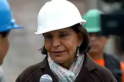 Mercedes Cabanillas Bustamante (born May 22, 1947) is a Peruvian educator and politician. A prominent member of the Peruvian Aprista Party, she served as Minister of Education in the first presidency of Alan García, making her the first woman to assume a cabinet position in the history of Peru.[1] Most recently, she briefly served as Minister of Interior in Alan García's second presidency, a position subject to scrutiny as she was signaled as responsible of the repression of natives in the 2009 Amazon crisis, in Bagua, which forced her to resign, and effectively ended her political career.[2]