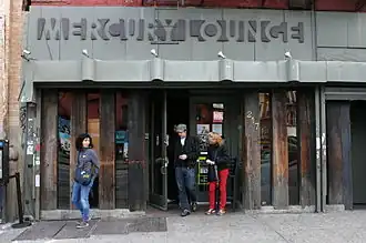 The Mercury Lounge is a live music venue on the Lower East Side of Manhattan in New York City. Like its brother venue The Bowery Ballroom, The Mercury Lounge is celebrated as an iconic indie venue[1] due to its acoustics, its fostering and even launching of upcoming artists,[2] and its no-frills, rock n' roll presentation.[3] It has made numerous top-ten lists over the years including that of Billboard Magazine.[4] It has a capacity of 250 people.[5] A scholarly account of Mercury Lounge and its place in the wider history of the city's rock music history and Lower Manhattan was published in 2020.[6]