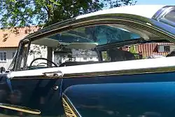 For 1955, Mercury redesigned its model line, adding the Montclair as a premium sedan line above the Monterey.[3] Alongside a four-door sedan (sharing a different roofline from the Monterey), the Montclair was introduced in a two-door hardtop and two-door convertible configuration.[4] As a styling feature, the Montclair received a color-contrast panel below the window line (typically color-coordinated with the roof).[3] A 292 cubic-inch V8 adopted from the new Ford Thunderbird roadster produced 195 hp; along with a 3-speed manual transmission, a 3-speed automatic was offered as an option.[5][1] The listed retail price for the 1955 2-door Hardtop Coupe was US$2,631 ($30,882 in 2024 dollars [6]) and sold 71,588. Standard equipment included cloth and vinyl upholstery, full interior carpeting, and chrome window surround mouldings; among the options were a heater and windshield defroster, radio, power adjustable front seat, power windows, power steering, power brakes and auxiliary road lamps.[1]