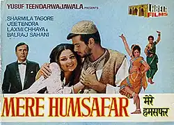 Mere Humsafar (transl. My Soulmate) is a 1970 Hindi-language romance film, produced by Yusuf Teendarwajawala under the Labela Films banner and directed by Dulal Guha. It stars Jeetendra and Sharmila Tagore, with music composed by Kalyanji Anandji.