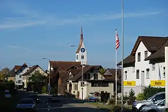 The village church of St. Vitus is first mentioned in 1245. Initially it was a family church for the Homberg and later the Hünenberg families. It later became the parish church for the district. The modern church was built in 1897-99, and incorporated the late gothic choir. The municipality of Benzenschwil is still part of the parish while Mühlau now is part of the Sins parish. The church tax rights were sold in 1389 to Kappel Abbey in Kappel am Albis. In 1531 they went to the Hof monastery in Lucerne. Then, in 1856 those rights came to the Canton of Aargau.[4]