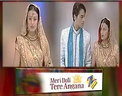 Meri Doli Tere Angana was a Hindi TV serial that aired on Zee TV.[1] It was based on the concept of a struggle of a woman who is totally committed and believes in herself. It's her strength that will stand by her through the difficult times. Produced by Rahul Bhat and Sharika Sharma Bhat under their home production banner Filmtonic Entertainment (Pvt) Ltd.[2]