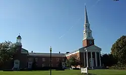 Meridian Street United Methodist Church, known in its early years as Wesley Chapel, the Meridian Street Methodist Episcopal Church, and the Meridian Street Methodist Church, is a Methodist church located at 5500 North Meridian Street in Indianapolis, Indiana. The church originated from the first Methodist congregation in Indianapolis that began in a log cabin in 1821–22 with fifty members. The congregation worshipped at several locations and erected four earlier churches on Monument Circle and along Meridian Street in downtown Indianapolis before it merged with the Fifty-first Street Methodists in 1945. The first service at its North Meridian Street location was held on June 29, 1952. Designed by the architectural firm of Russ and Harrison, the Georgian-Colonial-style, red-brick church is noted for its architecture, pipe organ (one of the city’s largest), and formal parlor. The Aldersgate addition on the west side (rear) of the church was consecrated on October 4, 1989.