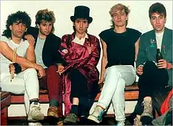At the beginning of 1980s, Edin Dervišhalidović was an aspiring young musician working in Uljanik factory.[1] In 1985, he formed the band Merlin.[1] The original lineup of the band featured Amir "Tula" Bjelanović (guitar), Mili Milišić (bass guitar), Džafer Saračević (drums) and Mensur Lutkica (keyboards).[1] During the following years, Merlin would see numerous lineup changes, with Dervišhalidović and Bjelanović remaining the mainstay members of the band.[1]