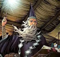 The modern version of Merlin is the half-brother of Etrigan the Demon and bound him to the human Jason Blood.[2] In The New 52 continuity reboot, Merlin is the founder of Stormwatch under the alias Adam One.[3]