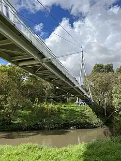 | 37°44′47″S 144°58′49″E / 37.746466°S 144.980180°E | Cable Suspension Bridge - between Coburg and Preston, also known as Harding st bridge | Pedestrians and cyclists | The only suspension bridge on the Merri creek. Opened in 1985. Replaces similar bridge constructed in 1925 and demolished in 1983.[8] | ![]() |