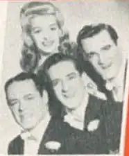 In 1939, Mary Lou Cook (1908–2008)[2] replaced Helen Carroll.[3] This is the foursome that most listeners know from film appearances. The McMichael brothers and Cook appeared as a specialty act in Hollywood movies, including 1940's Love Thy Neighbor, and Universal Pictures gave The Merry Macs their own feature-film series in 1941. Their most famous film is Ride 'Em Cowboy (1942), an Abbott and Costello comedy in which The Merry Macs offer musical interludes. At the time, Cook was married to actor Elisha Cook, Jr.; she ended both her marriage and her affiliation with The Merry Macs at about the same time.