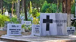 İnce recalls that in 2003, both Christian priests and Muslim hocas prayed during the burial ceremony of Hanri Atat, a celebrity of Mersin.[6] In 1999, Lina Nasif, a painter and a citizen of Mersin, organized an annual multi-religion ceremony, called a "traditional praying ceremony" (Turkish: geleneksel dua töreni), to stress and preserve the characteristics of the cemetery.[8] During the ceremony, hocas and priests pray and give speeches on peace. Hymns are sung in several languages. In a 2009 ceremony, Mersin mayor Macit Özcan stressed that the deceased of different religions all lay in peace and everybody should do his/her best to keep this feature of the cemetery.[9]
