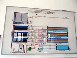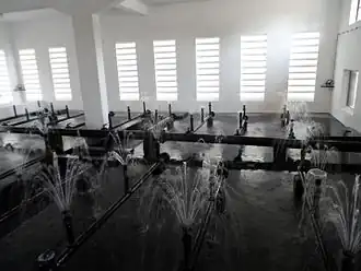 The museum is a former water filtration plant of the Mersin city. The water source was Müftü River (also called Efrenk River). The plant was constructed by the municipality of Mersin during the mayorship of Mithat Toroğlu . The construction began in 1936 and it was officially opened on 5 January 1939 [2] But Mersin is a fast growing city and the filtration plant for about 80000 soon fell short of the demand. In 1984 Mersin began to use water from Berdan River via a much bigger filtration plant and the former filtration plant was disabled.[3] The plant was neglected for about 30 years. But finally the municipality decided to keep the plant as a museum. Following a restoration work of two years, the museum was opened on 21 April 2016. In the opening ceremony mayor Burhanettin Kocamaz said that an unpublished history of the city has been brought to light.[4] Following the restoration, the pumps and the other machinery are still operable.
