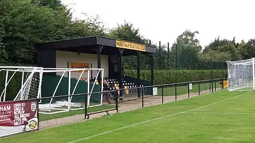 Winning the Combined Counties League title resulted in Merstham being promoted to Division One South of the Isthmian League. In 2014–15 they finished fourth in the division, qualifying for the promotion play-offs. After beating Faversham Town 5–4 on penalties in the semi-finals, they defeated Folkestone Invicta 3–0 in the final to earn promotion to the Premier Division.[4] They finished the season by winning the Surrey Senior Cup for a second time. In 2016–17 the club reached the first round of the FA Cup for the first time, losing 5–0 at home to Oxford United in front of a record crowd of 1,920.[6] They won the Surrey Senior Cup again in 2017–18.[7] The 2018–19 season saw them finish fifth in the Premier Division. In the subsequent play-offs, they beat Carshalton Athletic 2–1 in the semi-finals before losing the final 2–0 to Tonbridge Angels. In 2021–22 the club finished bottom of the Premier Division and were relegated to the South Central Division. At the end of the following season they were transferred to the South East Division.
