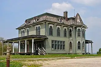 He was the architect and superintendent of the Riverside Cemetery in Moline.[2] He designed plans for a chapel of the Congregational Church in the city, and the S. S. David & Company building next to the Chicago, Burlington and Quincy Railroad Depot.[2] After the death of John Deere, his wife inherited Redcliff Manor and the family started living there in 1887.[10][11] It would be inherited thereafter by their daughter, Mabel Cady, wife of Charles Porter Skinner, three times Mayor of Moline, Illinois.[12][10]
