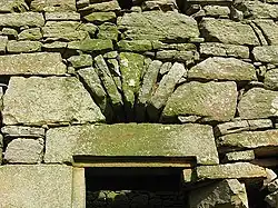 It is 7.77 metres (25.5 ft) by 6.5 metres (21 ft) with walls about 1.2 metres (3 ft 11 in) thick. It is two storeys tall, plus a garret. There are no stairs, and access was thought to be via ladders. There is no fireplace, but there is evidence of a hearth. There is evidence of other buildings existing nearby.[2]